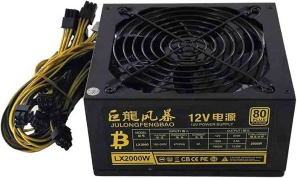 Julongfengbao LX2000W 80 Plus Platinum – výkonný napájecí zdroj 2000 W, ideální pro mining nebo serverová řešení, podpora až 8 GPU. Účinnost 80 PLUS Platinum, tichý 14cm ventilátor, ochrana proti přehřátí a zkratu. Konektory: 24-pin, CPU 4+4-pin, SATA ×8, Molex ×4, PCIe (6+2-pin) ×16. Místo: Praha, Rostovská 260/2b. Více inzerátů najdete v mém profilu.