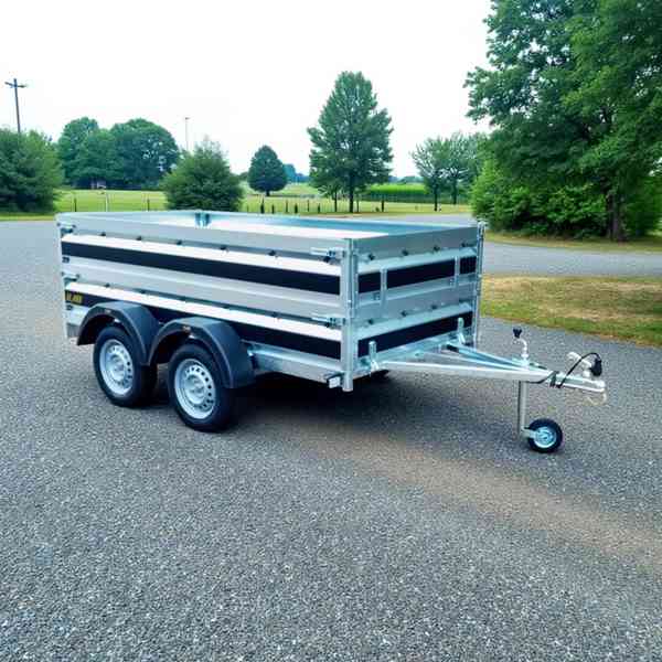 Nový profesionální přívěsný vozík za automobil - EASY 270T + NÁSTAVBA BOČNIC + krycí plachta - svařovaný rám - pro náročné použití. 2x osa 750Kg - Řidičák sk. B.