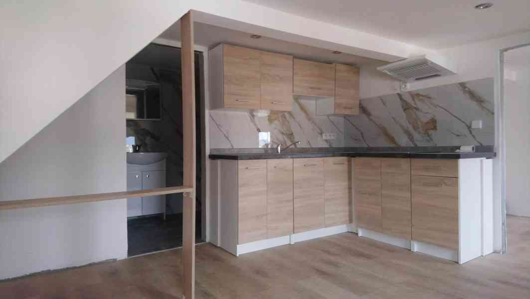 Prostor má NOVOU ROHOVOU kuchyňskou linku.