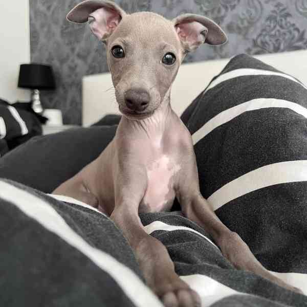 🌫️ Elegantní šedé štěně italského chrta – Připraveno ukrást srdce! 🐾