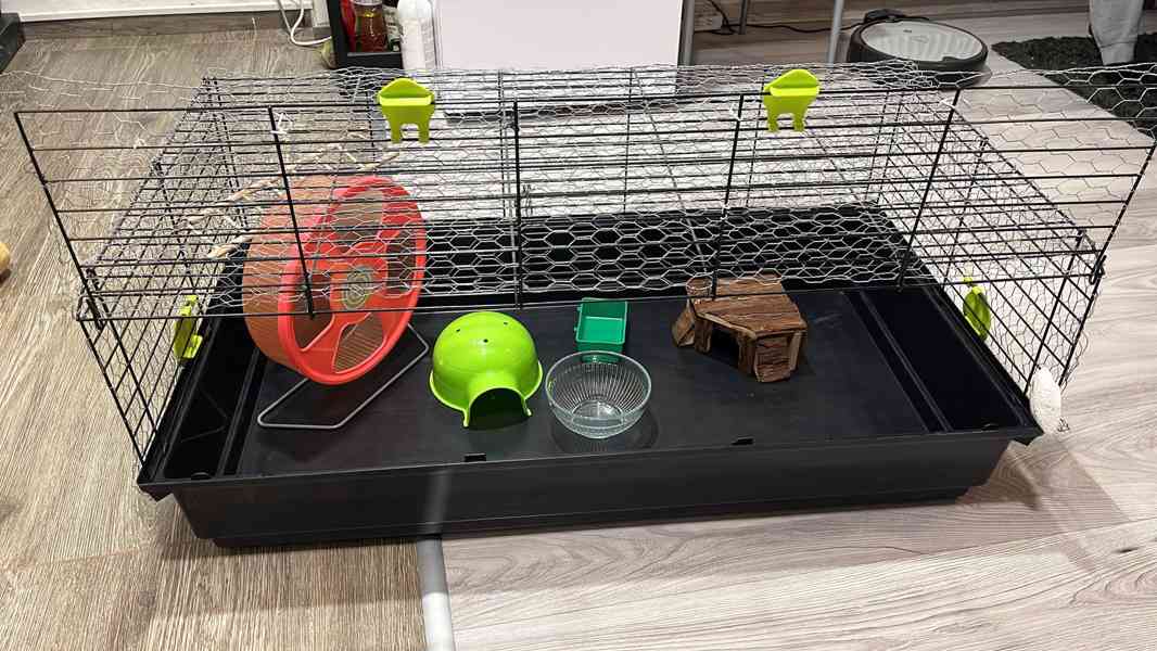 Použitá klec. Upravená pro chov Křečka Syrského. Plně funkční.