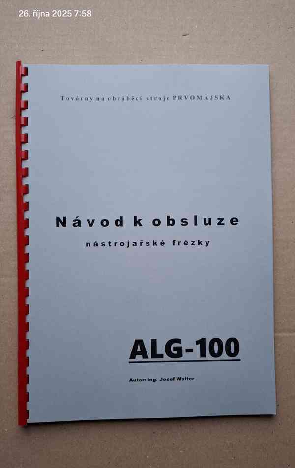 Nabízím návod nástrojařské frézky ALG-100 Prvomajska.