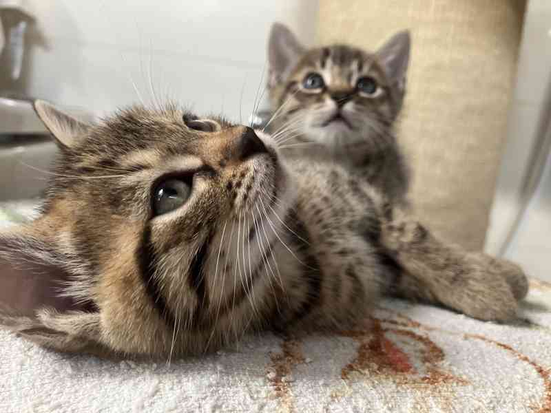 Zadám bengálská koťata, křížence kočky bengálské a evropské, narozené 14.6..2025. Koťata jsou veterinárně ošetřena, socializována, čistotná, zvyklá doma i venku, na děti, kočky, psy aj. Výživa kojení/barf. Odběr v průběhu října..