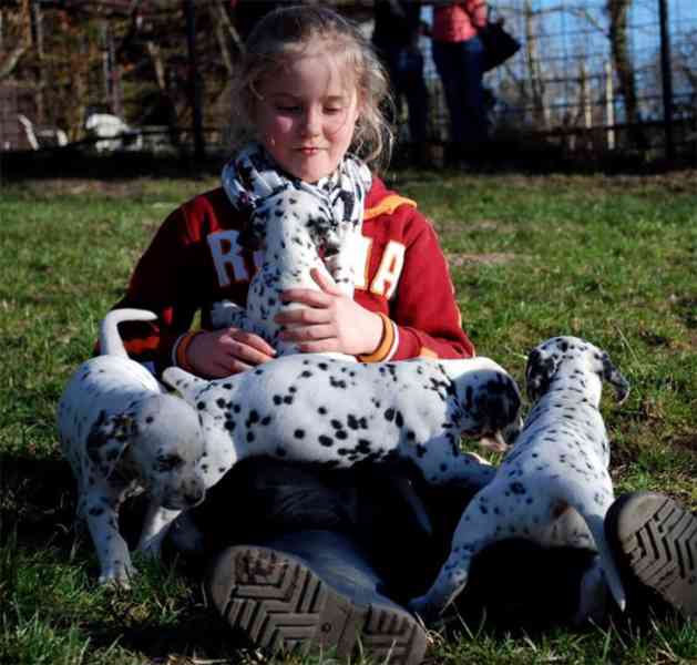 Dalmatinci (holka a pejsek) pomalu hledají nový domov.