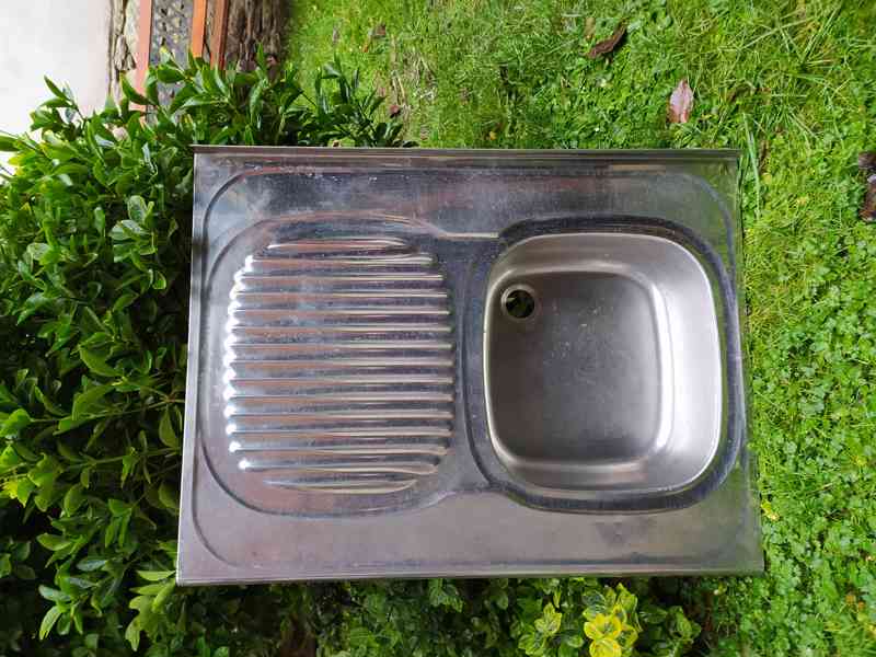 Nerezový dřez s odkládací plochou , použitý , nepoškozený o rozměrech 80 x 61 cm . Vhodné na chatu , chalupu . Běžná cena na trhu 990 Kč . Moje cena 400 Kč .