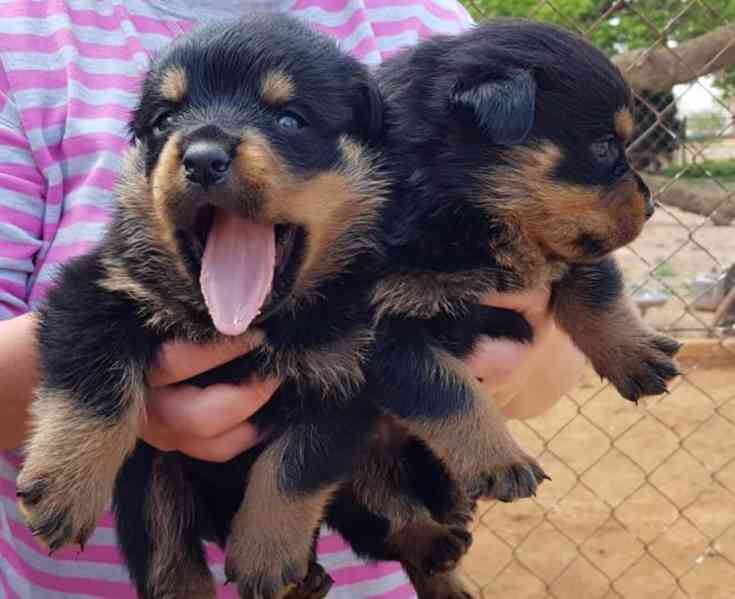 12týdenní štěňata rotvajlera připravená do nového domova. Štěňata byla vychována ve velmi klidném prostředí a jsou zvyklá na děti. Vychována s velkou láskou a péčí. Jsou včas očkována a budou velmi dobrými společníky vaší rodiny.