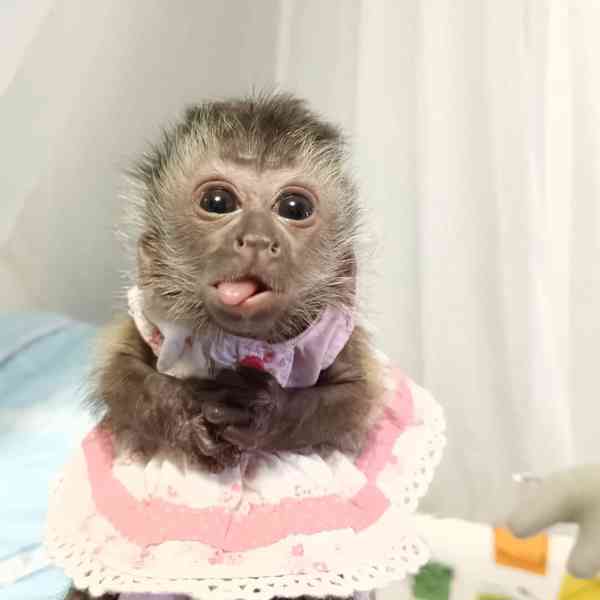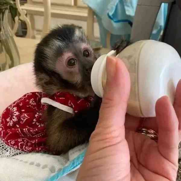 Máme k adopci vynikající kapucínskou opici. Vychována doma s láskou a soucitem. Dobře socializovaná, se zárukou zdraví a s přísným očkovacím plánem (doporučeno veterinářem). Máme licenci USDA. Opice je krmena z láhve, nosí plenky a oblečení. Je super milá a rozkošná. Pouze vážné dotazy, prosím bez zprostředkovatelů.