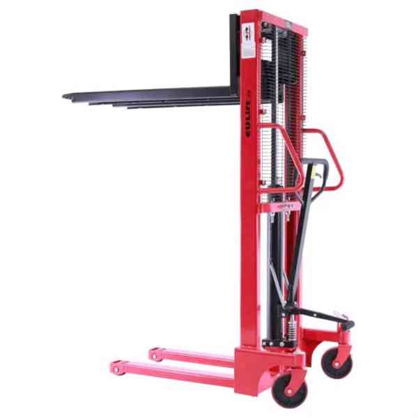 Vysokozdvižný vozík nosnost 1000kg, zdvih 1600mm. Kvalitní kola polyuretan. Konstrukční výška 1980mm. Manuální zdvih i pojezd. Záruka 24 měsíců.