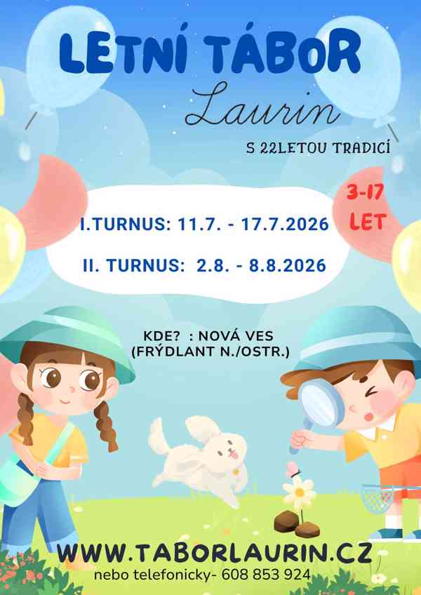 Přihlášky od 12.11. 2025 na: 608 853 924, nebo na taborlaurin@seznam.cz