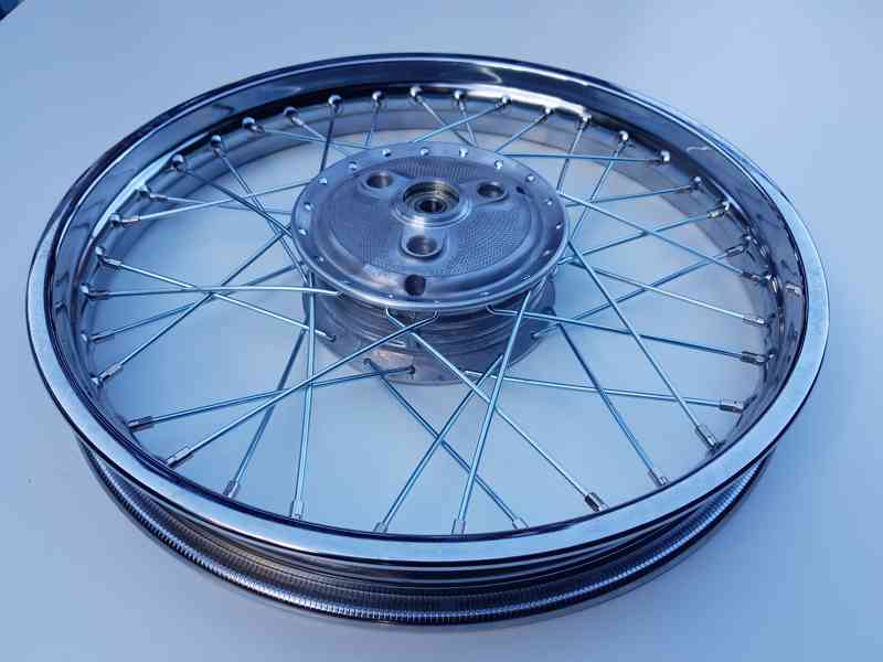 Ráfek chrom 1,60 x 16, nový střed (včetně ložisek a segerovek), pozinkované špice se závitem M 3,5 - 2700,-