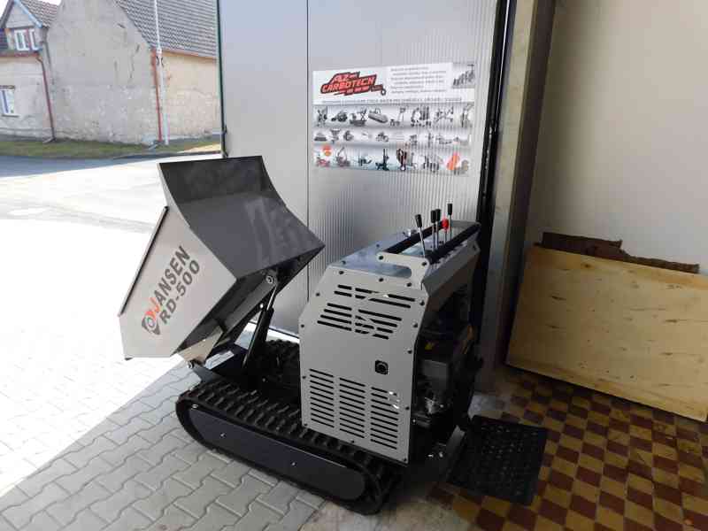 Pásový minidamper má hydrostatický pohon. Jansen RD-500 je nejnovějším modelem naší řady sklápěčů. Má žlab poháněný hydraulickým válcem (tloušťka stěny žlabu 3 mm).