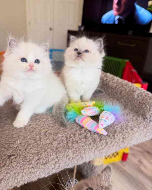 Naše krásná koťátka plemene Ragdoll jsou nyní připravena najít svůj trvalý domov! Tato koťátka, známá svou mírnou povahou a výraznýma modrýma očima, jsou neuvěřitelně přítulná a milují lidskou společnost.