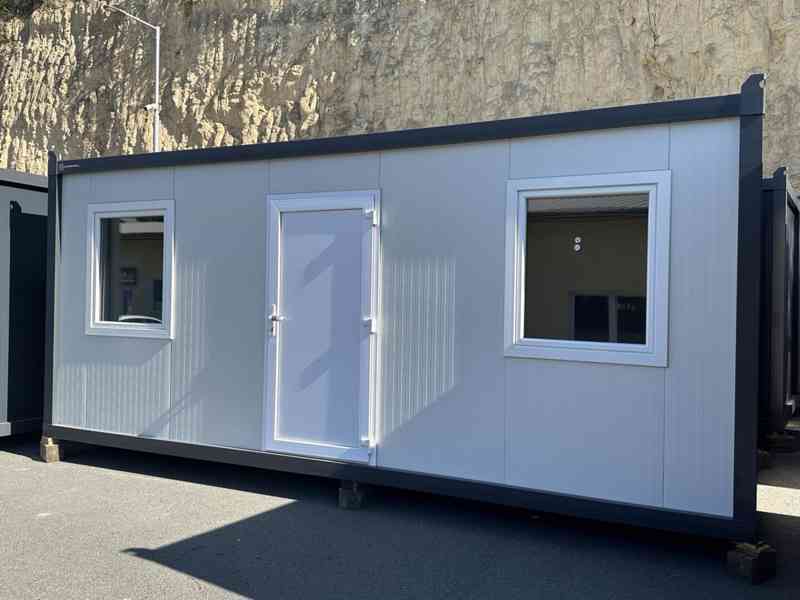 Obsahuje : 2x PVC okno bílé 100x120 cm, 1x PVC dveře 103x200 cm, kompletní elektroinstalace: 2x LED světlo, 2x zásuvka, 1x vypínač, 1x rozvodná skříň a pětikolíčková přípojce 32A