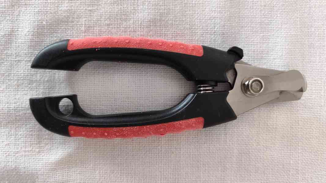 Prodám profesionální nůžky na drápky se zámkem pro psy a kočky, vyrobeno z nerezové oceli a syntetické gumy. Byly použity pouze několikrát na zastřižení drábků kocourkovi. Odolný a robustní pružinový mechanismus, snadné, bezpečné a pohodlné používání, zabraňuje příliš hlubokému zastřižení drápků - doraz. Speciálně vyvinuto pro domácí zvířata, vel. 16 cm, viz fota. Cena 140,-Kč.