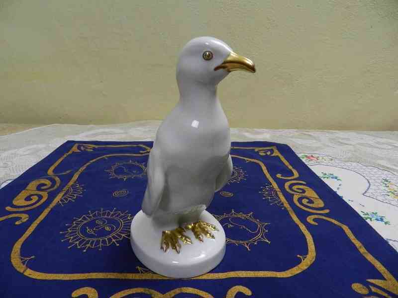 Hezká bílá zlacená soška, Tučňák - dvojí značení, signováno, Lindner, koncern Epiag, PirkenHammer, Březová Czechoslovakia, 1 pol. 20 stol.