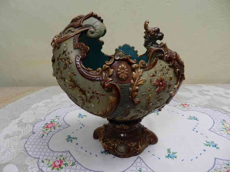 Krásný masivní novorenesanční Nástolec, ručně malovaná majolika - Wilhelm Schiller Horní Grund, kolem 1900.