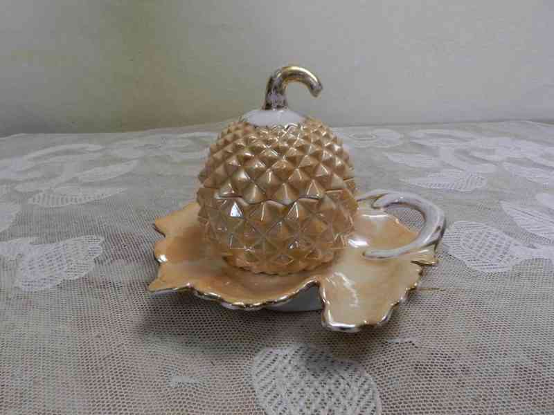 Porcelánová zlacená Dóza ve tvaru ananasu - Značeno A, Aichwald, Doubí u KV, 1849-1859.