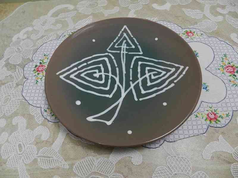 Zajímavý obří keramický Talíř - značeno Keralit, štítek Krásná Jizba, Družstevní Práce..