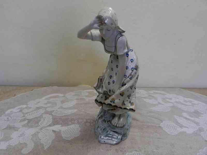 Krásná keramická ručně malovaná glazovaná Soška, Žena - značeno a signováno, A. Doebrich, Ernst Wahliss Turn Wien Austria, kolem 1900.