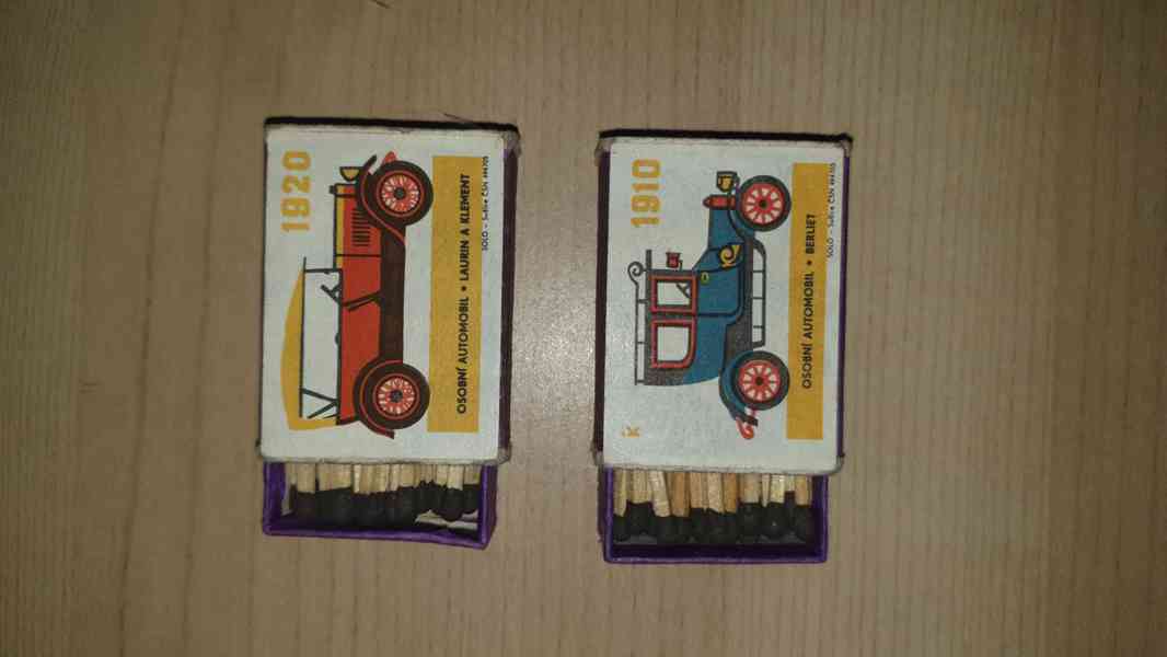 Staré krabičky se zápalkami. Krabičky nejsou plné, částečně vyškrtané.