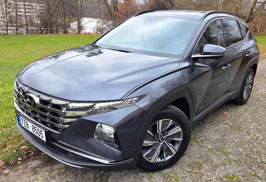 Prodám Hyundai Tucson 1,6 T-GDI SMART 110 kW, MHEV -mild hybrid, benzín + elektřina pomáhá při startu a rozjezdu, předjíždění.., nedobíjí se ze zásuvky, manuální převodovka 6 rychlostí. Koupeno 2022 v Čr, vyrobeno v Čr, v záruce do 2027, nebourané, jen výměna čelního skla, výpis Cebie, 158 000 km, pravidelný servis, servisní kniha, 2x klíč,při 152 000 km po servisu a výměně P+Z kotoučů + destičky, nyní bez investic. TK+E do 2/2026, dálniční známka Čr do 2/2026. Dvouzónová digi klima, palubka - 4 motivy, Android Auto, Apple CarPlay, bezdrátové nabíjení mobilu, Bluetooth, rádio DAB, denní Led světla, komplet P+Z a vnitřní Led světla, automatického přepínání dálkových světel, automat světel a deště, el. sklopná zrcátka, 4x el. okna, hlídání mrtvého úhlu, info o rozjezdu kolony, čtení dopravních značek, zadní parkovací kamera a senzory s radarem, hlídání tlaku v pneumatikách, nouzové brzdění, Lane asistent kamera, zadní polohovací opěradla, regulace sjezdu ze svahu, asistent rozjezdu, tempomat, omezovač, USB, vyhřívaná sedadla, vyhřívaný volant, tažné zařízení, režimy - Eco, Normal a Sport, plní Euro 6. Barva šedá metalíza - Dark knight metallic - kód YG7, orig. Alu kola, Isofix, multifunkční stavitelný volant, airbagy, ABS, ESP, ASR. Plnohodnotná rezerva Alu + příslušenství, zatmavená zadní okna, zadní stěrač, orig. gumové koberce, gumový koberec v kufru. Dlouhodobá spotřeba 6,5 l posledních více jak 5 000 km, většina dálnice..