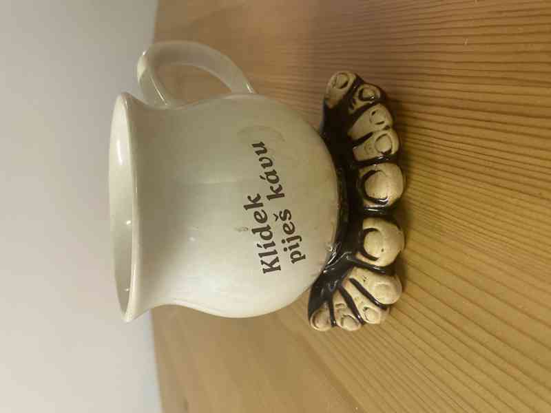Keramický hrníček s vtipným motivem – stojí na podstavci ve tvaru nohou. Ideální jako dárek nebo netradiční doplněk do kuchyně.