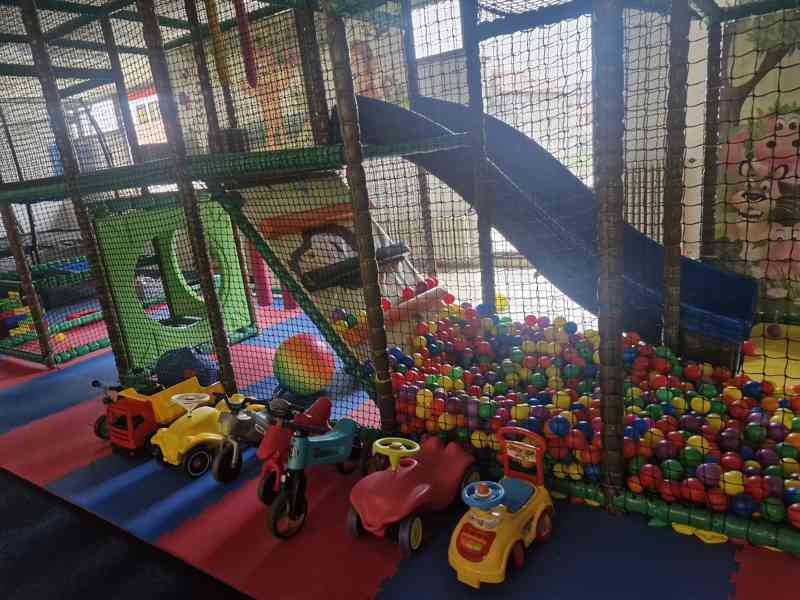 Jeden velký profi hrad se skluzavkou, herní konstrukce, autíčko na mince, mincovniky na kuličky, fotbalek na mince, velká konstrukce s certifikaci viz foto, komplet posezení(známky použití) 2x bar, poličky, chladící vytrina, šuplíkovy mrazak, pultovy mrazak, lednice, měkké bloky pod hriste, trampolina, možno vzít i hračky, velké kostky, penove bloky, dětská kuchynka, možno vzít i koberec rok starý, poličky a možná jsem na neco zapomela. Původní cena byla o dost větší ale potřebuji to prodat nemáme to už kde skladovat.