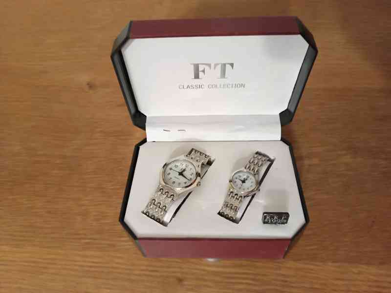 Prodám hodinky FT QUARTZ v dárkovém balení pro pár (dvě velikosti). Bez baterií, nepoužité, jako nové. Cena za oba kusy.