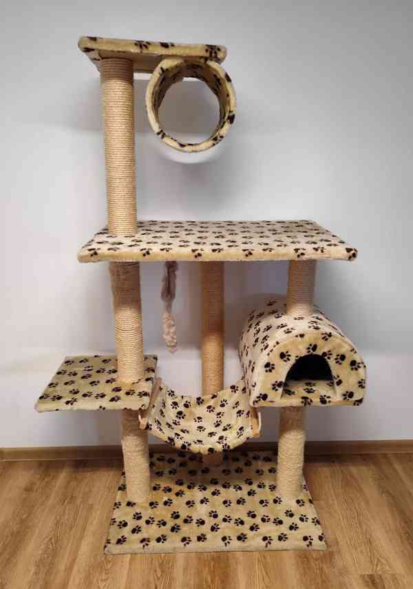 Prodám středně vysoké škrabadlo pro kočky na hraní a zábavu ve velmi dobrém stavu, rozměry: V 157 x Š 107 x H 52 cm. Robustní konstrukce se 3 sloupy, houpací síť D 37 x Š 30 cm, domeček na spaní a hraní rozměr: D 36 x Š 36 x V 21 cm, vchod 18 x 16 cm, nahoře válec průměr 21 cm, viz fota. Cena 700,- Kč.