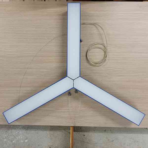 Prosím viz foto... k dispozici jsou případně další dvě světla. Délka ramene 43cm, výška tělesa 9cm. Zavěšení pomocí stavitelných lanek.