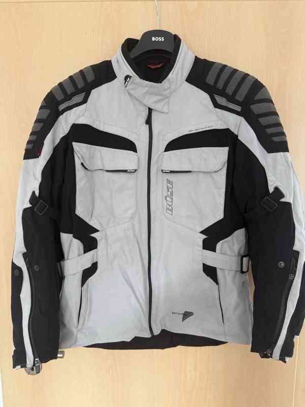 Materiál speciální tkanina 450D COSATEC 100% polyester, podšívka ze síťoviny 100% polyester, nepromokavá prodyšná klima-membrána a podšívka, jsou vyjímatelné nezávisle na sobě (v létě vzdušné a prodyšné, přitom teplé přes podzim a zimu), zateplená DuPont ComforMax, větrací průduchy, vnější materiál Cordura 500D, který je na loktech a ramenou zesílen o materiál 1000D, vyjímatelné CE protektory SUPER SHIELD, vyjímatelná podšívka, velmi lehká, ale teplá, ISO 4916 bezpečnostní švy, 3M Scotchlite ™ reflexní materiál, Stretch CORDURA ® na kolenou a hýždích, 2 vnější kapsy, atd.