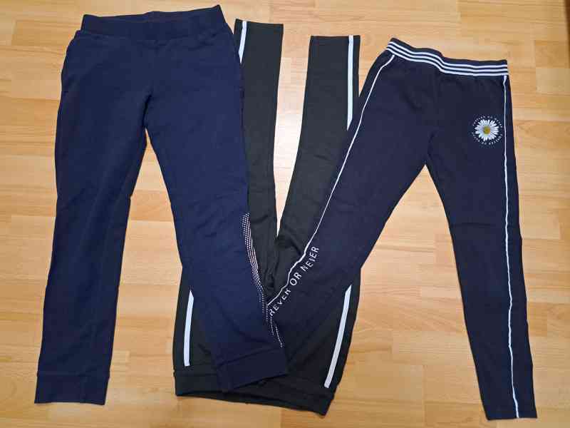 Prodám 3 ks dívčích tepláků - velikost 146, 1x decathlon, 2x pepco, materiál bavlna. Cena neobsahuje poštovné.