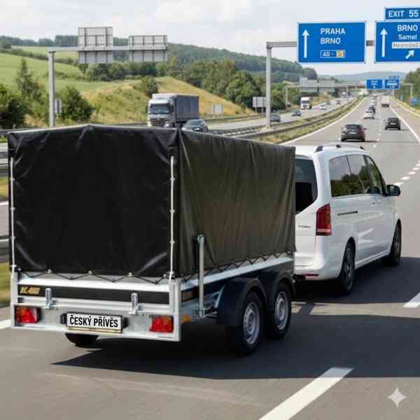 NOVÝ - ČESKÝ přívěsný vozík EASY 300T + vysoká plachta s konstrukcí 145 - řidičák skupiny B.