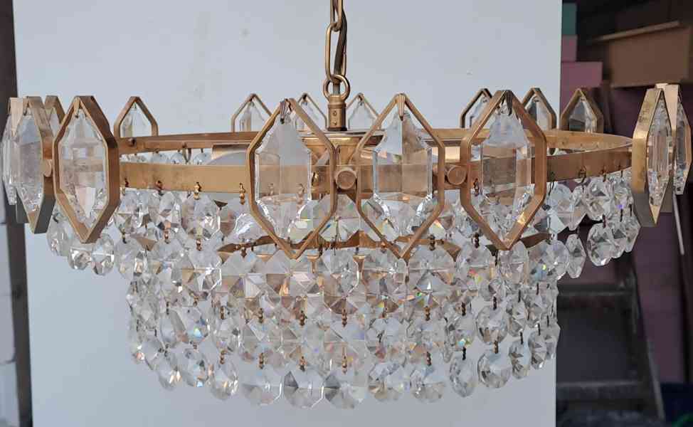 Prodám krásný křišťálový lustr s mosaznou konstrukcí a broušenými křišťálovými ověsy. Lustr má elegantní a nadčasový vzhled, vhodný do obývacího pokoje, jídelny, ložnice nebo reprezentativních prostor.