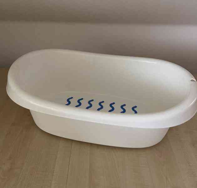 Prodám malou dětskou vaničku o rozměrech 36 x 60 x 20cm. Bez vady, bílá barva s protiskluzovými linkami.