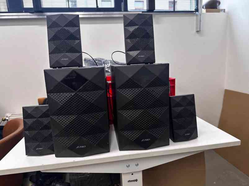 Prodám reproduktorový systém Fenda F&D A180X ve výborném stavu. Moderní design s geometrickým vzorem, hluboké basy a čistý zvuk – ideální pro hudbu, filmy i hry. Bluetooth připojení – přehrávání hudby přímo z telefonu. Výkon 65 W RMS, systém 2.1 (subwoofer + 2 satelity), dálkové ovládání, vstupy Bluetooth, USB, AUX, SD karta, LED indikace. Plně funkční, bez poškození. Cena za jeden kus 450 Kč, při koupi dvou 850 Kč. Adresa: Rostovská 2b.