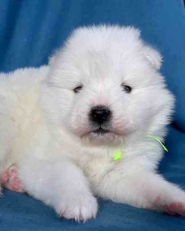 Štěňata samojeda, samci i samice, jsou velmi zdraví a dobře vycvičení. Jsou nádherná a vzácná. Jsou registrovaná a budou doručena se všemi veterinárními doklady. Každá rodina nebo osoba, která má zájem, by mě měla kontaktovat.