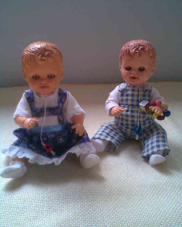 dvě mrkací panenky s kočárkem, postýlkou, ohrádkou a doplnky