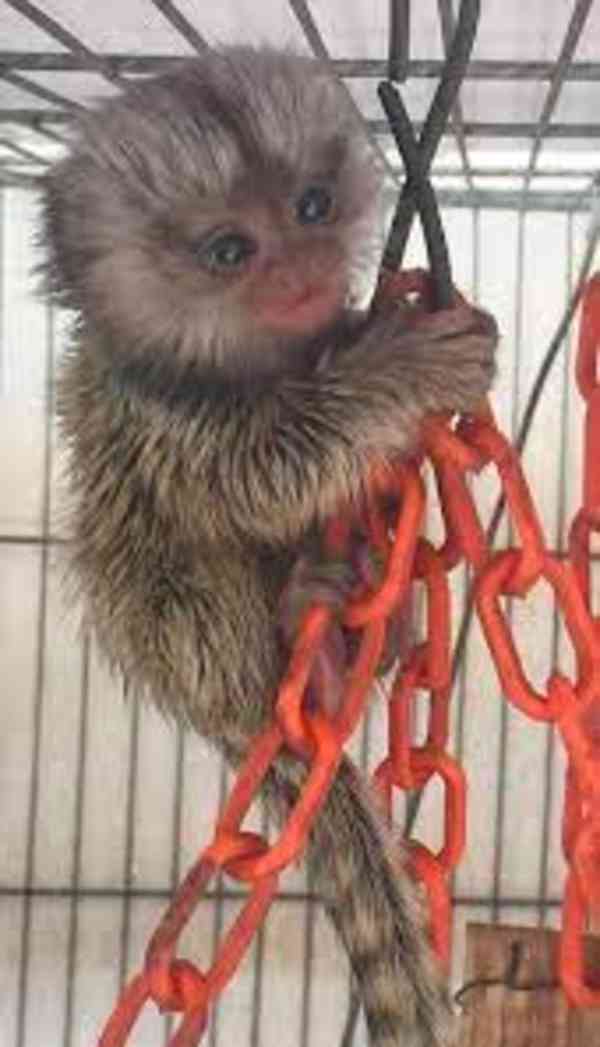 To 3-miesięczne małpy marmozety. Są zaznajomione z ubraniami i pieluchami. Marmozety to bardzo małe małpy, wielkości puszki Coca-Coli i ważą mniej niż pół kilograma. To wspaniałe małpy, które nie mogą zrobić człowiekowi poważnej krzywdy, tak jak małpy człekokształtne. Są tak samo zabawne jak duże małpy, ale dziesięciokrotnie mniej ryzykowne. Poza tym kosztują znacznie mniej. Są wspaniałymi zwierzętami domowymi i bardzo zabawne. WhatsApp +44 7460104503