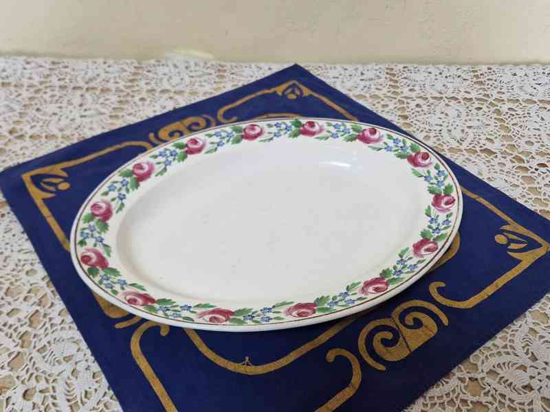 Krásný velmi starý malovaný kameninový tác, značeno, Dalovice? 1 třetina 19 stol.