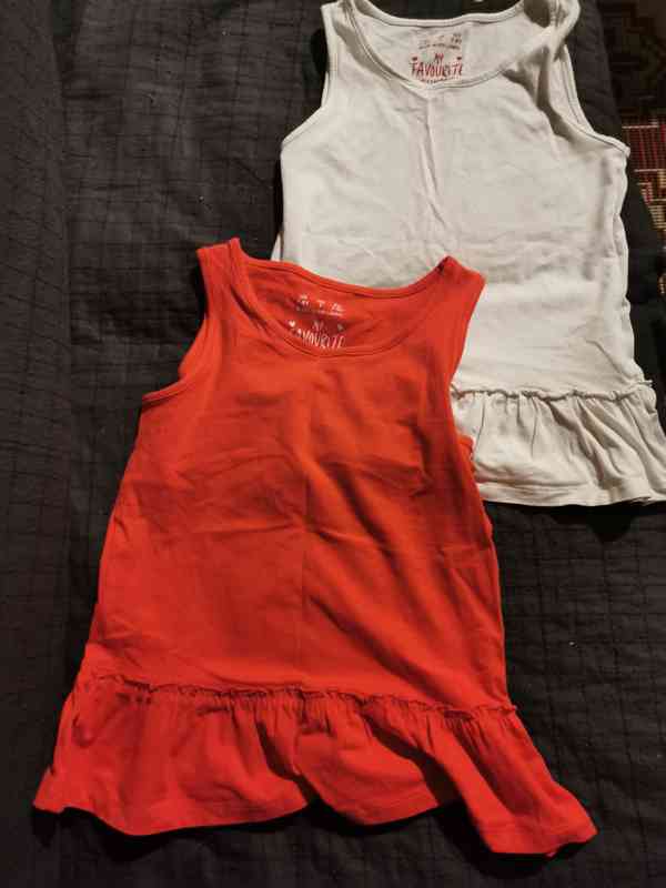 Tílko-šatičky pro 7-8 leté děti značky FF, bílé a červené barvy, vyjímečně nošené, bez vad. Cena za oba kusy.