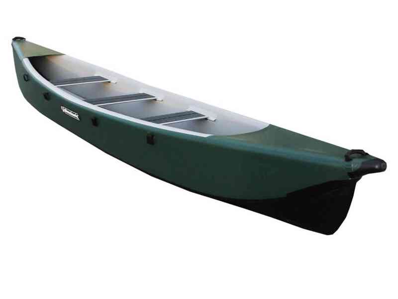 Senzačná konštrukcia z osvedčeného materiálu Trop-Stitch. Tuhosť je podobná plastovej kanoe, ale keď je kanoe vyfúknutá, môže sa zložiť a uložiť do kufra automobilu.