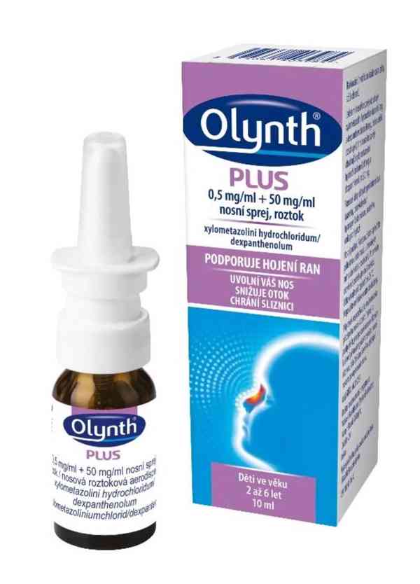 O produktu: OLYNTH PLUS 0,5 mg/ml + 50 mg/ml nosní sprej, roztok 10 ml