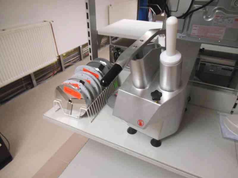 Kráječ zeleniny, sýru, brambor a zelí do restaurace, jídelny, pizzerie, atd.. Model EKO vč. 8 kotoučů, výkon 40 - 100 Kg / hodina; leštěný hliník; mikrospínače; dva otvory; výkon 0,55 kW; 230 V; rozměr ŠxHxV 240 x 540 x 450 mm; 23 Kg; až 13 typů kotoučů, podstavec na kotouče. Naše cena: 17.990,- Kč vč. DPH a doprava. (kód: A713003)