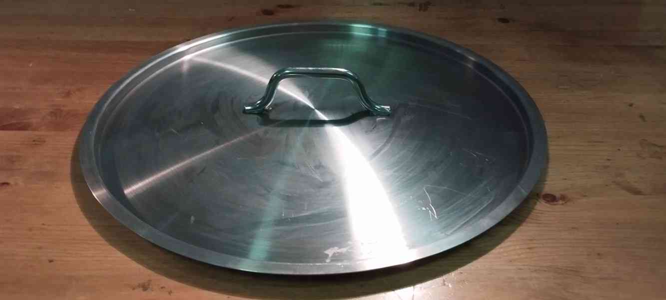 Poklice na velký hrnec s průměrem 45 cm – profi. Materiál nerez, hrnec má okraj tak, aby hrnec těsnil, vnitřní část průměr 45 cm, venkovní část vč. lemu 47.3 cm. Poklice není použitá, výprodej skladu. Běžná cena: 799,- Kč, výprodejová cena: 499,- Kč + doprava. (kód: S019454-23)