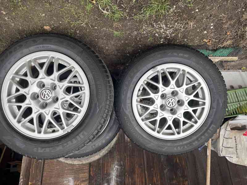 Prodám BBS disky R15 195/65 pneu jsou zimní 2 cm se dají jeste teď v létě dojezdit rozteč 5x100 et 43