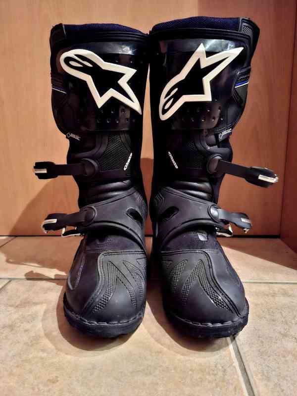Kvalitní enduro boty od značky Alpinestars model Toucan Gore-Tex v udané velikosti – 42 (8) vhodné i na nohu o číslo menší. Jsou málo použité a ve velmi dobrém stavu.