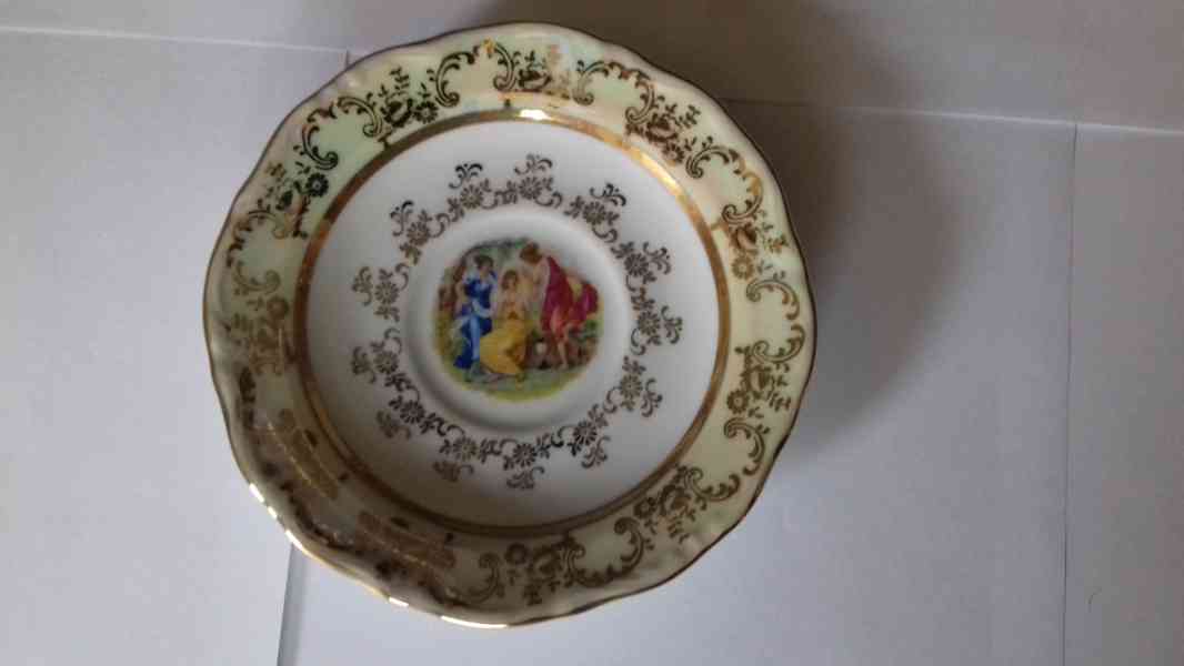 Prodám kompletní sadu dekoračního nádobí zn. Original decor s motivem Tři Grácie (6x, hluboký talíř - 6x, talířek pod šálek - 6x, šálek - 6x, konvička na mléko - 1x, cukřenka - 1x, velká konvička - 1x)