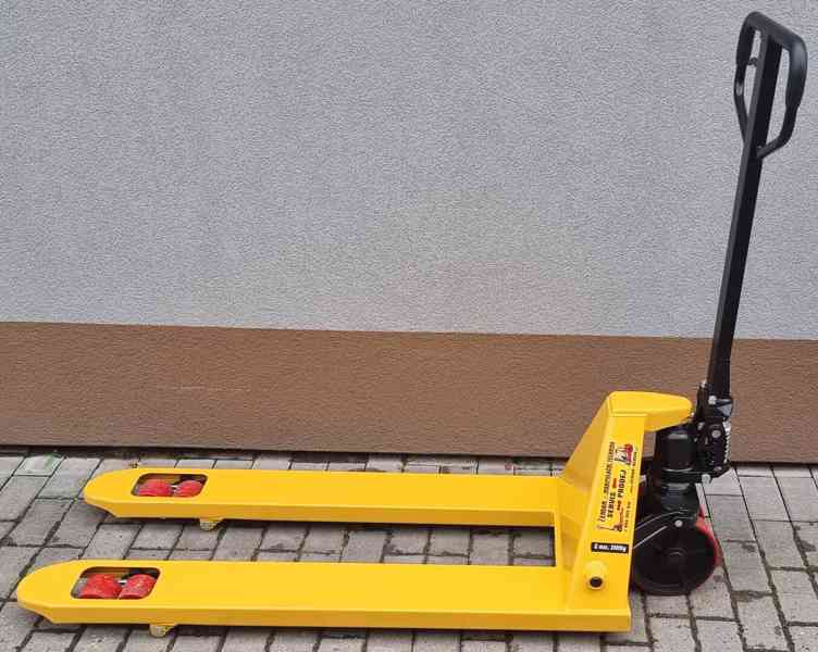 Paletový vozík nový s nosností 2000kg. Kvalitní kola polyuretan. Záruka 30 měsíců. Kompletní servis, kompletní náhradní díly. Možnost výhodné dopravy po celé ČR.