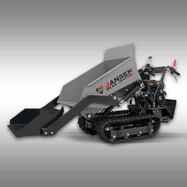 Hydraulická samonakladacia lyžica umožňuje rýchle a bezproblémové nakladanie materiálov. Vďaka intuitívnemu ovládaniu a silným zdvíihu môžete bez námahy manipulovať s ťažkými bremenami a ušetriť drahocenný čas pri každom nakladaní. Na rozdiel od mnohých iných ponúk je korba na našom Jansen ® RD-300S rovná a nie kónusová. Pri kužeľovitej korbe sa sypký materiál pri vyklopení veľmi rýchlo zasekne. Vďaka týmto vlastnostiam sa náš mini sklápač odlišuje od konkurencie! Proces vyklápania a sklápania prebieha niekoľkých sekúnd. Dodávame zosilnenú verziu stroja so zosilnenou korbou (hrúbka steny 3 mm).